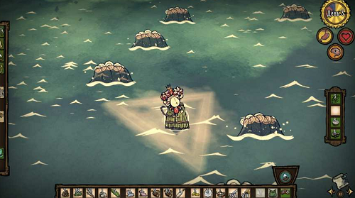 饥荒海难是一款结合沙盒探索与策略生存的角色扮演游戏,采用独特的2D手绘画风构建出立体动态场景。玩家将置身于随机生成的群岛生态中,通过收集资源、制作工具、应对气候危机等玩法,在危机四伏的海域展开生存挑战。