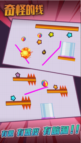 1、创新性引入动态物理引擎,绘制线条的弧度与角度将直接影响小球运动轨迹