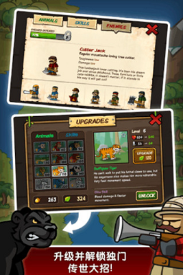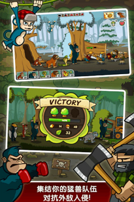 森林防御战猴子传奇是一款以自然生态为主题的策略塔防游戏,玩家将化身森林守护者,通过巧妙部署动物军团抵御伐木者的入侵。游戏通过清新明快的画面与富有深度的策略玩法,为玩家呈现一场别开生面的绿色守卫战。