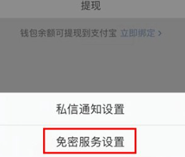 6、在弹出的二级菜单中选择「免密服务设置」选项,进入协议管理界面后选择对应服务的解约功能,完成支付密码验证即可解除自动续费绑定。