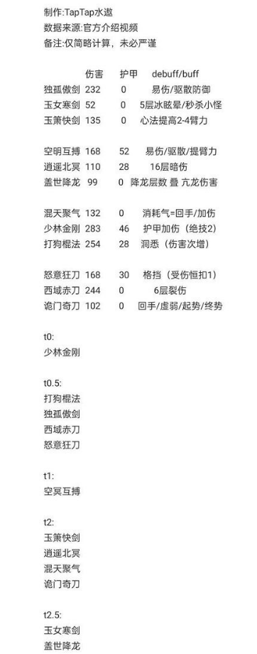 在选择流派时应重点考量队伍定位与战斗风格,T0级少林金刚适合作为核心承伤位,配合T0.5级输出流派可组建均衡阵容。建议新手优先培养少林金刚+打狗棍法的攻防组合,待资源充足后再拓展其他流派。每个流派都有独特的武学搭配策略,合理运用招式衔接与心法配合方能发挥最大战力。
