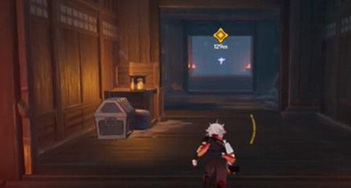 在完成首轮武士对决后,沿左侧木质回廊行进约20步距离,注意观察右侧屏风后方空间。此处布设的雕花木箱与场景装饰物形成视觉干扰,建议使用角色冲刺技能穿过屏风间隙即可发现首处宝箱。