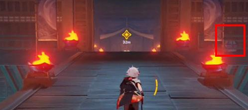 通过中央悬空桥梁时需注意视角调整,落地后立即向右后方折返。该区域存在视觉错位设计,宝箱实际位于石灯笼阵列后方,玩家可借助场景中的枫叶粒子特效作为方向指引,贴近右侧山壁行走即可触发交互提示。