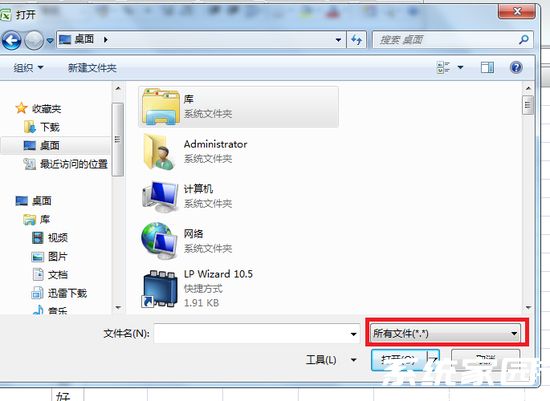 3、在文件类型选择区域,需手动将默认的Excel格式切换为"所有文件"显示模式,此时系统会列出全部类型的存储文件。