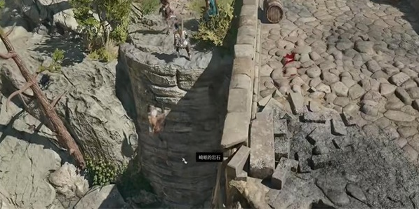 2、地形跨越技巧:目标物所在位置被断裂的石桥阻隔,目测跨度约15码。角色若具备「迷踪步」或「羽落术」类位移技能可直接传送,物理系职业可通过投掷绳索建立临时索道,力量属性达16点以上的角色可选择助跑跳跃方案。